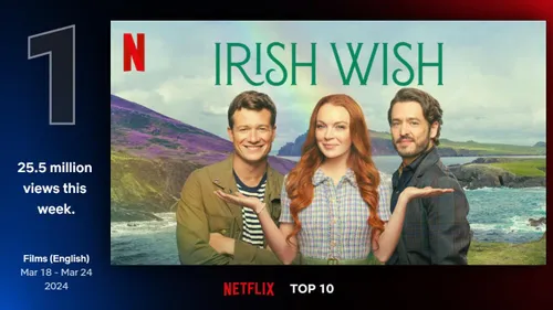 Wie domineert de Engelstalige filmlijst deze week? Lindsay Lohan! De romantische komedie van Lindsay Lohan, Irish Wish, is met 25,5 miljoen views de meest bekeken titel van de week.