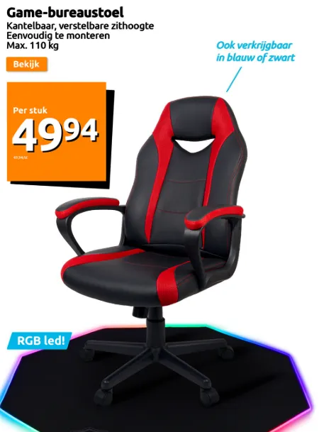 Deze fantastische aanbieding in de weekfolder van Action is namelijk nog maar geldig tot en met 28 november. Wie weet is het uitgelezen cadeau voor de sint of eindejaar of gewoon omdat je deze grandioze gaming stoel zeker kan gebruiken.
