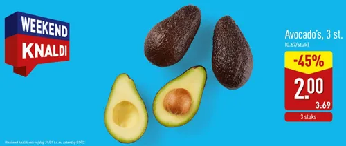 Van vrijdag 31 januari tot zaterdag 1 februari profiteer je van een onweerstaanbare actie bij Aldi: koop drie avocado’s en krijg 45% korting! Het klinkt bijna te mooi om waar te zijn, maar het is écht zo. Je koopt drie verse, romige avocado’s voor slechts 2 euro. Dat komt neer op slechts 0,67 euro per stuk – een deal die je niet wilt missen.