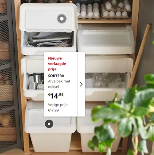 Dankzij het harde werk van IKEA om de prijzen laag te houden, kun je nog steeds genieten van hoge kwaliteit en slim ontworpen producten zonder een gat in je portemonnee te branden. Vaak zijn het de kleinste veranderingen die het grootste verschil maken. De SORTERA Afvalbak met deksel is daar een perfect voorbeeld van. Mis deze aanbieding niet en haal er vandaag nog een in huis!