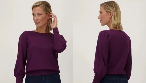 Voor wie op zoek is naar iets subtiels maar toch feestelijk, is dit bordeaux glitterende truitje een uitstekende keuze. Het truitje van D'Auvry heeft een klassieke ronde hals en een luxe afwerking dankzij de metallic draad die de stof een zachte, verfijnde glans geeft. De schoudermanchetten, afgewerkt met een zilverkleurig accent, maken het truitje net dat beetje extra speciaal. Dit is een perfecte optie voor een feest met een meer casual dresscode, maar met de juiste accessoires kan het ook tot zijn recht komen bij een chique gelegenheid. Prijs: €59,99 bij E5 Mode.