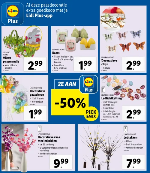 Deze paasperiode kun je profiteren van een 2e artikel aan 50% korting actie! Of het nu gaat om de schattige vilten paasmandjes of de energiezuinige Ledverlichting, Lidl heeft het allemaal!