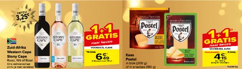 Hieruit blijkt dat een Zuid-Afrikaanse wijn, verkrijgbaar in rood, wit of rosé, nu onderdeel uitmaakt van een 1+1 actie. Voor slechts 6,49 euro kun je twee flessen van deze wijn op de kop tikken.