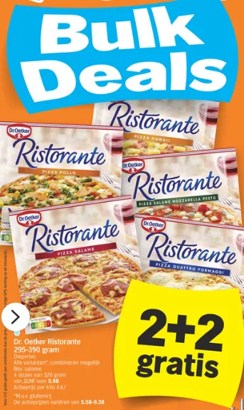 Deze week is de ideale week voor alle pizza-liefhebbers om hun favoriete pizza’s in huis te halen. Albert Heijn heeft namelijk een spectaculaire aanbieding voor u in petto - een fantastische 2+2 gratis actie op de heerlijke diepvriespizza's van Dr. Oetker's Ristorante assortiment.
