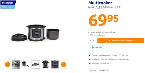Let wel op, er geldt een bezorgkosten van €6,99. Mis deze kans niet om jouw keuken te transformeren met de QLT Multicooker. Bestel vandaag nog en maak koken leuker en makkelijker dan ooit tevoren!