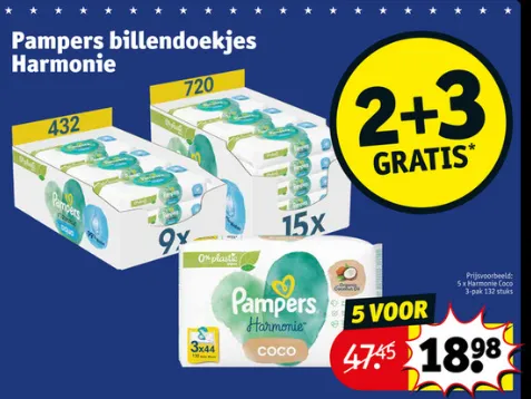 Maar het is geweldig dat Kruidvat een 2+3 gratis formule voor onder meer Pampers Harmonie billendoekjes aanbiedt. Voor 5 pakken billendoekjes betaal je slechts 18.98 euro in plaats het volledige bedrag van 47.45 euro. Wat een groot verschil!