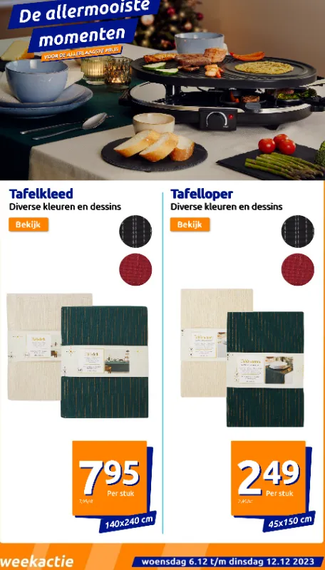 Nog tot en met dinsdag 12 december kan je genieten van bijvoorbeeld tafellakens of lopers in diverse varianten. Een tafellaken kost je 7.95 euro (140 x 240 cm). Een tafelloper heb je al voor 2.49 euro (150 x 45 cm).