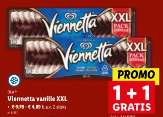 Onder deze aanbiedingen is er een verleidelijk ijsdessert, de Viennetta vanille XXL ijsstronk, momenteel beschikbaar onder de 1+1 gratis promotie.