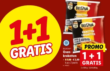 Deze kroketten kunnen worden bereid in zowel de oven als de airfryer. Nu kan je twee pakken van 600 gram krijgen voor slechts 3.99 euro, geen 7.98 euro.