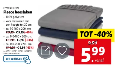 De hoeslakens in fleece mogen zelfs weg aan 40 procent korting. Het volledige assortiment kan je online bekijken op de website van Lidl. Hieronder geven we je nog me welke voordelen fleece heeft.