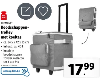 Daarnaast is deze trolley ook online te bestellen, maar ook verkrijgbaar in de Lidl-filialen, tot en met 21 mei voor slechts €17.99 per stuk! Sla je slag nu en bereid je alvast voor op de warmere dagen.