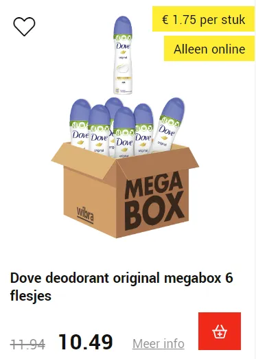 Het beste deel van deze megabox aanbieding? Je krijgt zes van deze compacte verzorgingsspray voor slechts €10,49! Dat betekent slechts €1,75 per stuk, terwijl ze normaal voor €1,99 per stuk verkocht worden. Dat zijn aanzienlijke besparingen, vooral als je een frequente gebruiker bent van deze verkwikkende Dove deodorant.
