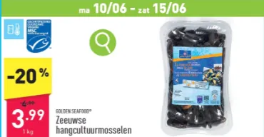 Normaal gesproken betaal je voor deze luxe een stevige prijs, maar niet bij Aldi. Voor slechts €3.99 per kilo geniet je van deze heerlijke Zeeuwse hangcultuurmosselen. Dat betekent een korting van 20%, een aanbieding die je niet kan laten liggen!