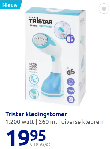 Deze felbegeerde Tristar kledingstomer met zoveel indrukwekkende functies kan de jouwe zijn voor slechts 19,95 euro per stuk. Dat is echt waarde voor je geld. Haast je dus naar de Action, want deze aantrekkelijke promotie wil je zeker niet missen!