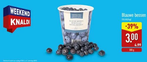 Dit keer staan de blauwe bessen in de spotlight, en dat is iets om te vieren! Vanaf vrijdag tot en met zaterdag kun je een potje van 300 gram blauwe bessen kopen voor slechts 3,00 euro, in plaats van de gebruikelijke 4,99 euro.