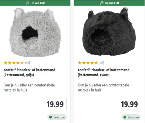 Het beste van dit alles is misschien nog wel de prijs. Voor slechts 19.99 euro per stuk inclusief BTW (exclusief levering), kun je jouw huisdier voorzien van een comfortabele en veilige rustplek in huis. Jouw hond of kat zal je dankbaar zijn! Bestel vandaag nog bij Lidl, waar kwaliteit en comfort samenkomen.