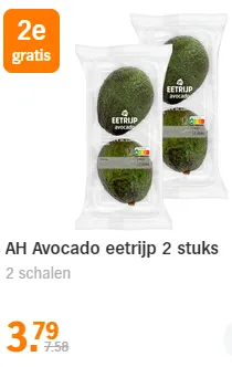 Met genoegen kunnen we jullie melden dat Albert Heijn supermarkten uitpakken met een promotie om de hoogwaardige, eetrijpe avocado's te komen ontdekken. Voor een ongelooflijke prijs van slechts 3.79 euro, krijgt u niet één, maar twee verpakkingen met elk twee avocado's.