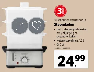 Nou, dit is jouw kans, want Lidl heeft momenteel een geweldige online aanbieding voor een handige keukentool: een stoomkoker met 3 BPA-vrije opzetstukken voor maar 24,99 euro! Verander je keukenroutine en begin op een gezondere manier te koken met deze eenvoudig te gebruiken stoomkoker.