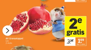 Supermarktketen Albert Heijn speelt hier tot 29 oktober nog volledig op in. In de hamsterfolder van deze week treffen we namelijk een formule van 2e gratis aan voor, granaatappels.