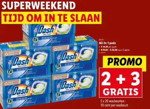 Lidl heeft een knalpromotie van Dash all-in-one was pods!