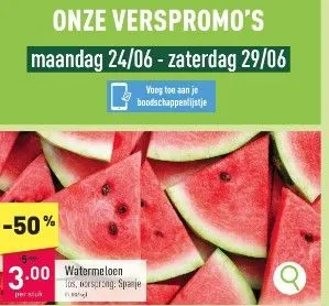 Bovendien, krijg je bij Aldi - 50 % korting deze week op een watermeloen. Dus vanaf maandag 24 juni, haast je naar Aldi en krijg jouw favoriete zomervrucht voor slechts 3 euro per stuk.