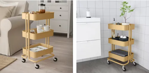 De roltafel, beschikbaar in wit, zwart en geel, is niet alleen stijlvol maar ook uiterst functioneel. Perfect te gebruiken als serveerwagen in de keuken, praktische opslag in de badkamer, of waar je maar extra opbergruimte nodig hebt in huis. Dankzij zijn compacte formaat past deze roltafel zelfs op de smalste plekken, waardoor je optimaal gebruik kunt maken van je ruimte.