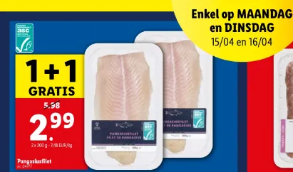 Maak je klaar om je smaakpapillen te verwennen bij Lidl op 15 en 16 april! Dus vergeet niet, alleen op deze data krijg je twee verpakkingen pangasius filet voor de prijs van één bij Lidl. Eet smakelijk!