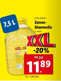 Lidl heeft een heel interessante XXL-promotie lopen tot 14 november. Tot die dag kan je nog heel voordelig zonnebloemolie aankopen.