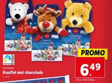 Daarnaast heeft Lidl ook een leuke set in hun winkels liggen vanaf 29 november. We hebben het hier over een leuke knuffel gecombineerd met chocolade.