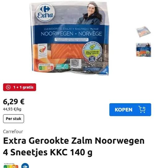 Carrefour maakt van iedere gelegenheid iets bijzonders. Momenteel heeft de supermarktketen een promotie van gerookte zalm. Deze zalm wordt gekweekt in de Noorse fjorden, waar het voeder rijk is aan omega 3-vetzuren en geen genetisch gewijzigde organismen bevat.