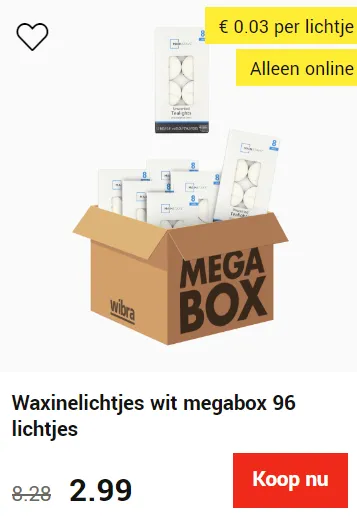 Wibra heeft volledig begrepen dat je tijdens de wintermaanden veel kaarsen gebruikt. Daarom komen zij met uiterst interessante deals. Wibra biedt megaboxen met theelichten aan die ze online promoten.