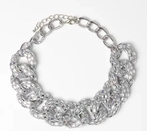 Halsketting met Grote Schakels in Zilveren Steentjes (19,99 euro) Deze prachtige halsketting met grote schakels en zilveren steentjes is de perfecte manier om je feestoutfit wat extra bling te geven. De combinatie van de opvallende schakels en het sprankelende effect zorgt ervoor dat je deze ketting zonder moeite kunt combineren met een strakke jurk of een feestelijke top. Verkrijgbaar in zwart of zilverkleurige steentjes, deze ketting zal je zeker in de spotlights zetten.